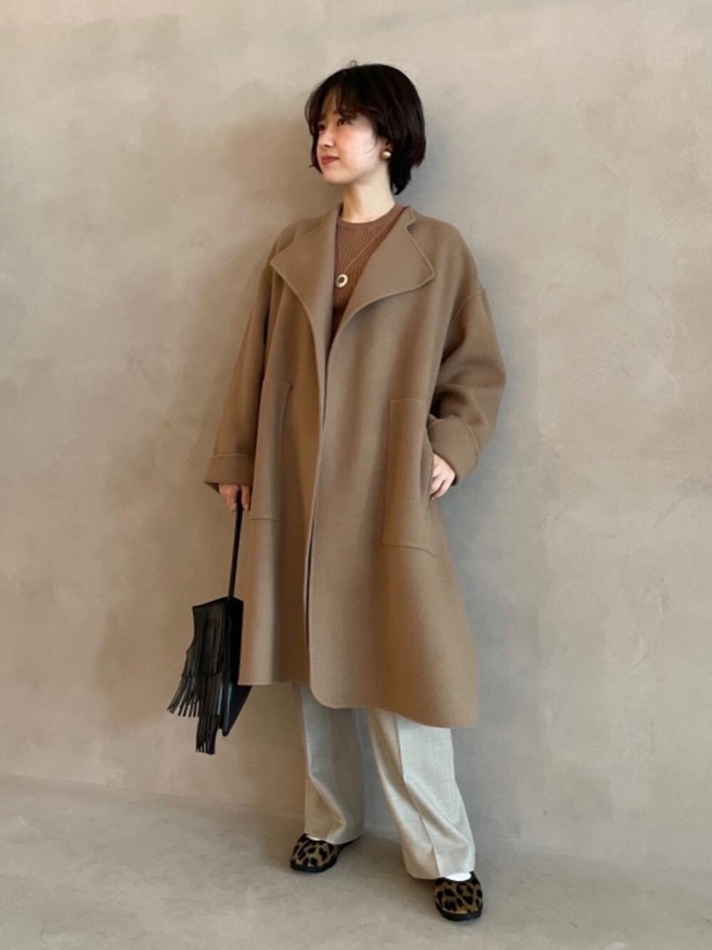 【身長】154㎝ 【普段サイズ】トップス36/ボトムス34/シューズ23㎝ 【サイズ感】 コート:36でもゆったりめ、丈感は膝下ぐらい ニット:ややタイトめ パンツ:標準的 【素材感】 コート:なめらかで軽い素材感 ニット:コットンカシミヤの上質で柔らかい触り心地 【着心地】 コート:さらっと一枚羽織るだけで大人でクラシカルな印象になります。 ニット:肌触りが良くとても着心地が良いです。 パンツ:低身長の方にも嬉しい34サイズからの展開です。