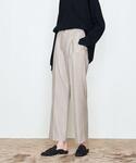 【身長】154㎝ 【普段サイズ】トップス36/ボトムス34/シューズ23㎝ 【サイズ感】 アウター:ゆったりめ ブラウス:標準的 パンツ:標準的 【素材感】 アウター:ハリ感があり軽い素材感 ブラウス:とろみのあるレーヨンになめらかなシルクが配合されており上質な素材感 パンツ:ウール特有の温かみのある素材感 【着心地】 アウター:ポンチョ形のアウターはコーディネートに抜け感をプラスします。 ブラウス:襟ぐりが広めなので女性らしくお召しいただけます。今回は後ろに襟を少し抜いて着用しました。 パンツ:タックが入っており、脚を綺麗に見せられるパンツです。身長153センチですが、34で丈感ちょうどでした。