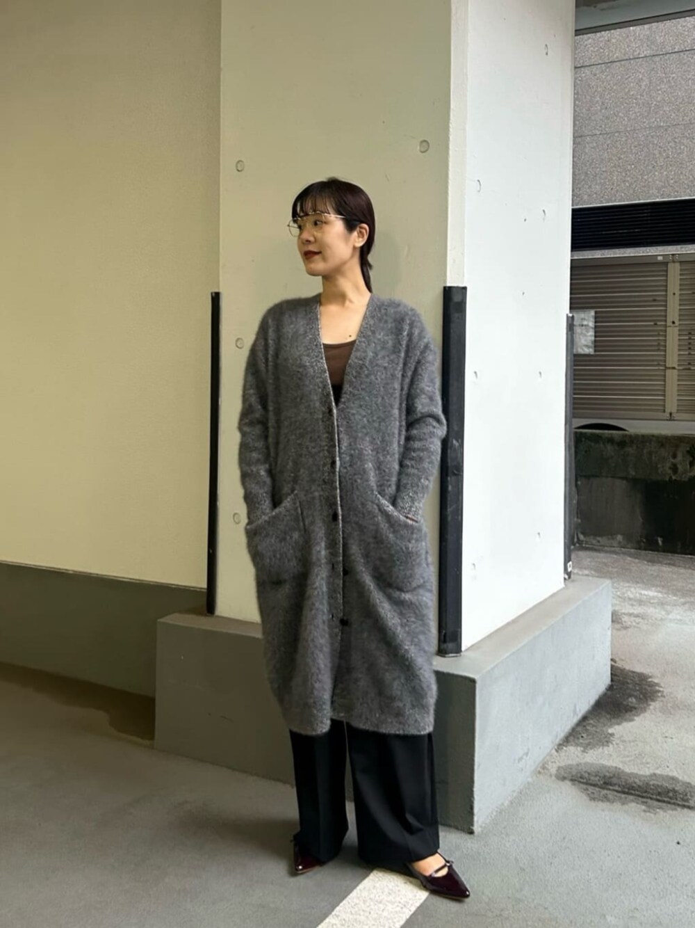 ●身長164㎝ ●普段サイズ:トップス38/ボトムス38/シューズ37h 【サイズ感】 カーディガン:肩周りゆとりあり。 パンツ:ウエストゴム仕様 【コーディネートポイント】 ふわっとしたフォックスカシミヤ素材の ロングカーディガンはチクチク感が少なく、タンクトップの上から着用しています。 全体的にリラックスしたサイズ感の為足元は綺麗めなシューズを合わせモサっとしないようにしました。