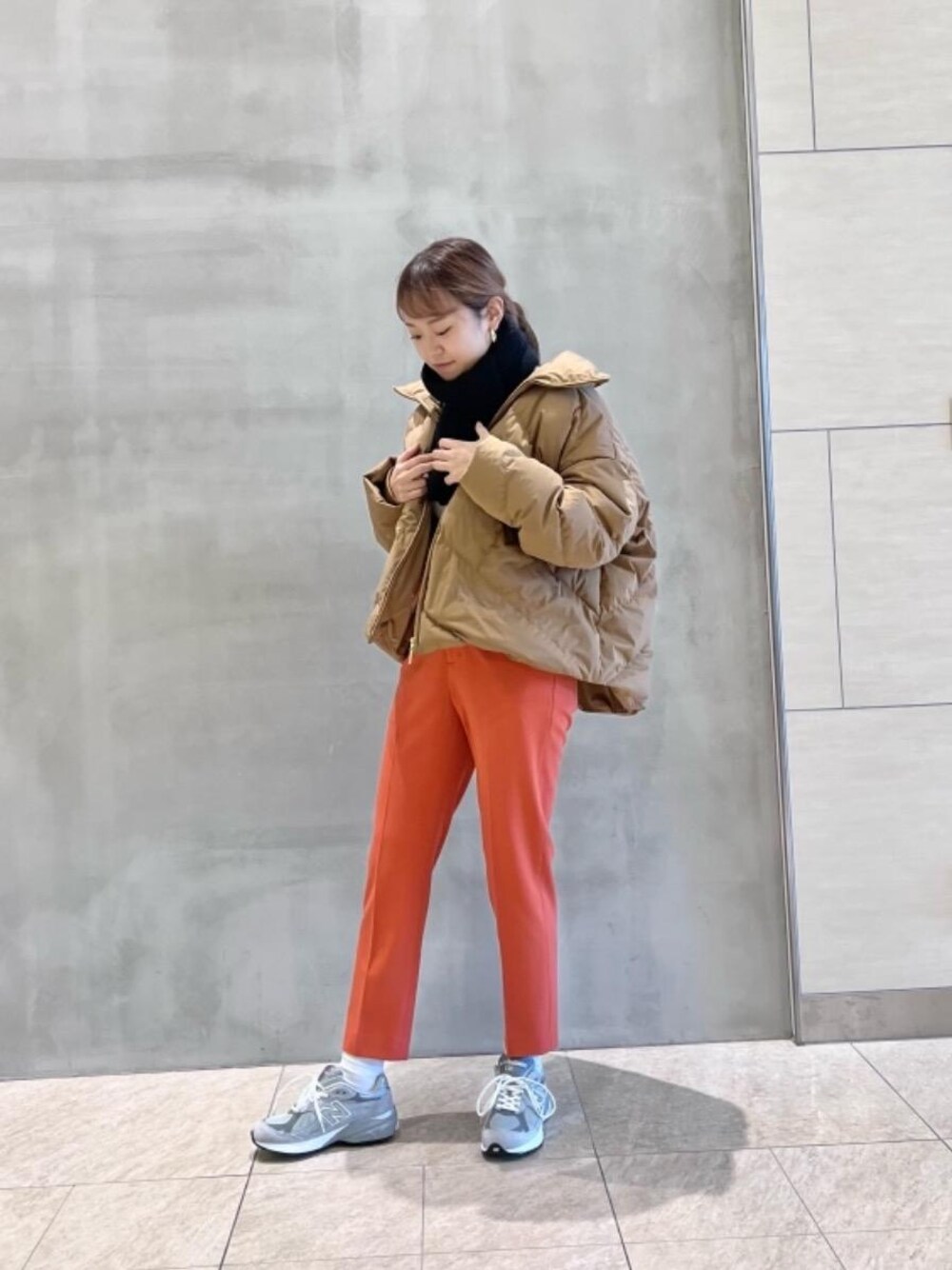 ・年齢:20代前半 ・身長:165センチ ・普段サイズ:カットソー S/ボトムス S/シューズ 24.5cm 【サイズ感】 ニット:標準 パンツ:標準 ダウン:やや大きめ 【着心地】【素材感】 ダウン:軽くて暖かい。 マフラー:柔らかいニット素材 パンツ:伸縮性がありすっきりとしたシルエット 【コーディネートポイント】 ボリュームのあるダウンに足元はスッキリしたパンツを合わせバランス良く仕上げました。 ダウンの肩を抜いて抜け感が出るように着用していただくのもオススメです。