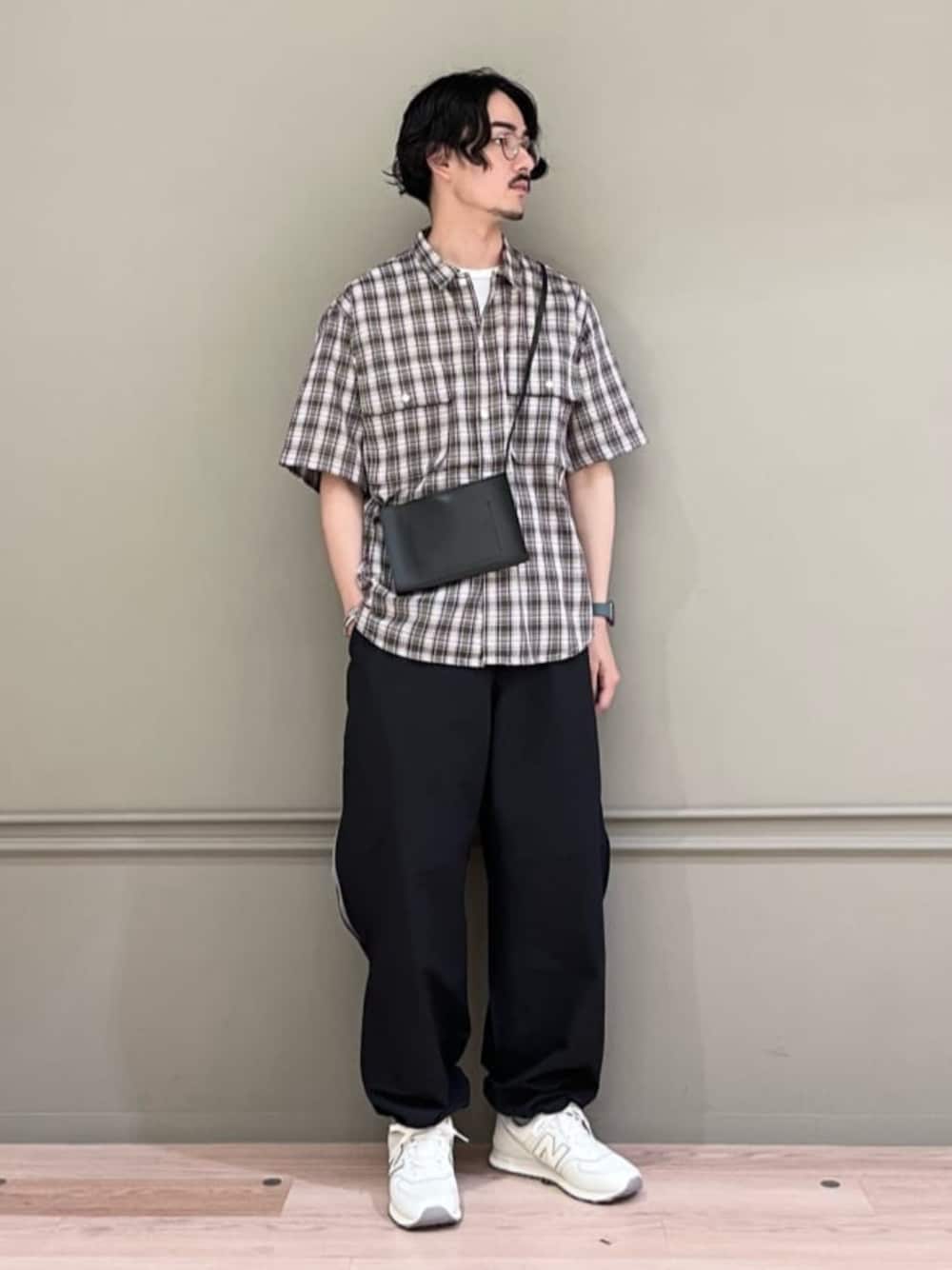 【サイズ感】 シャツ:ゆったり Tシャツ:ややゆったり パンツ:ゆったり シューズ:標準的 【コーディネートポイント】 ゆったりながらもシャツとクリーンなスニーカーでカジュアルになり過ぎないよう意識しています。