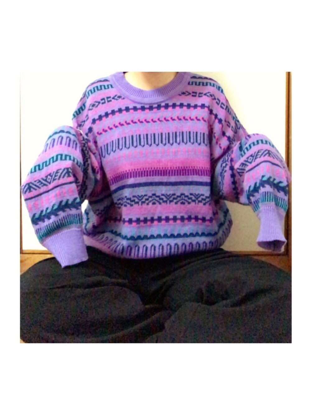 古着屋の総柄ニット♡ 色がツボすぎて即買いでした🙈💕