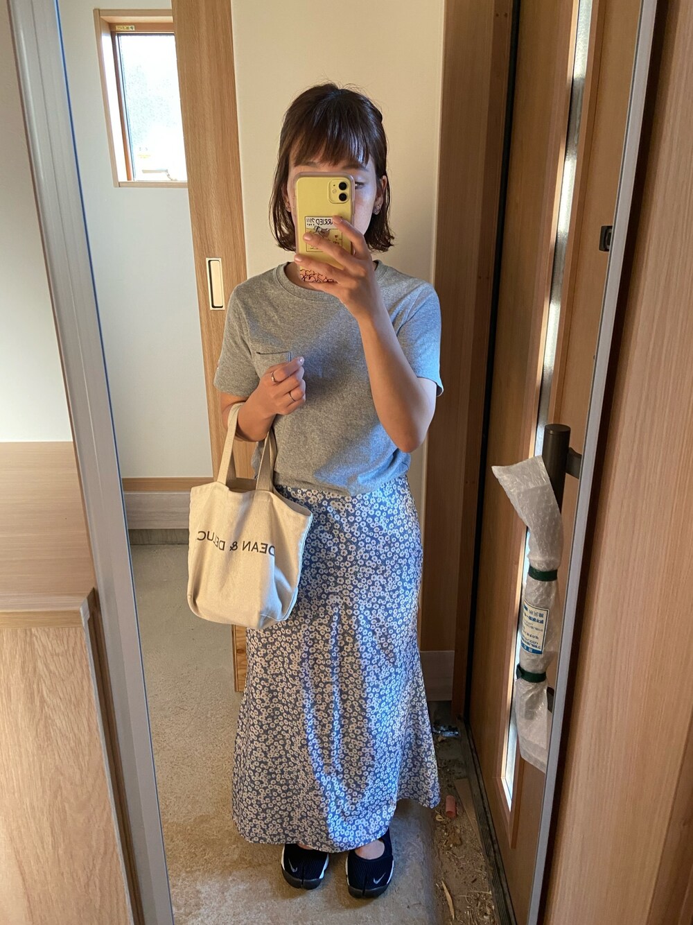 玄関に姿見が入ってたから撮ってみた! まだ建築中の新居です🏠✨
