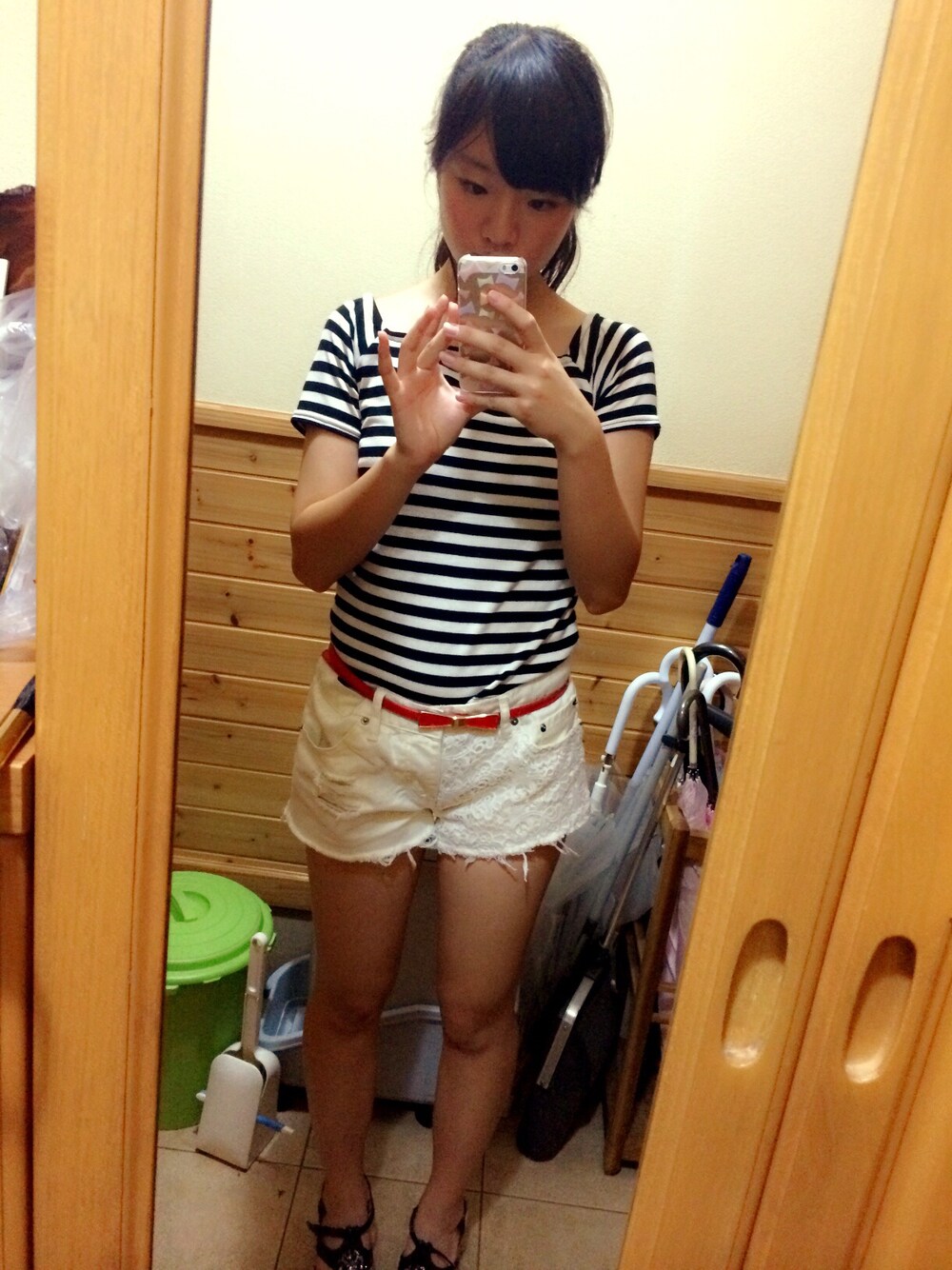 バイトに行くだけのらくちんコーデ♪ 赤ベルトがポイント♪