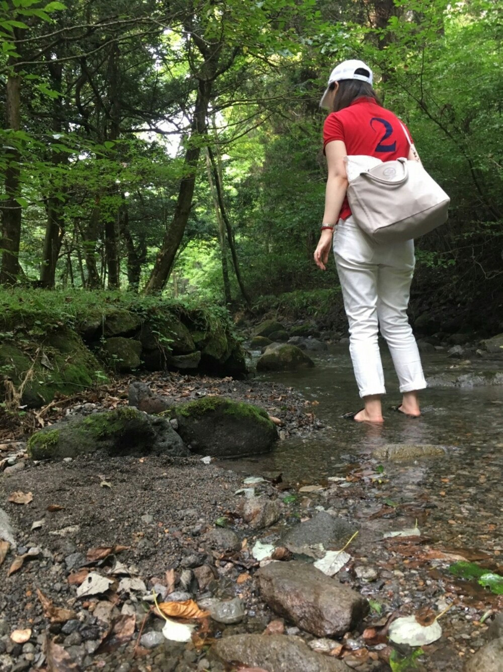 動きやすさ重視(^○^) 水濡れ前提でサンダル持参! 熊本の産山村にある山吹水源✴