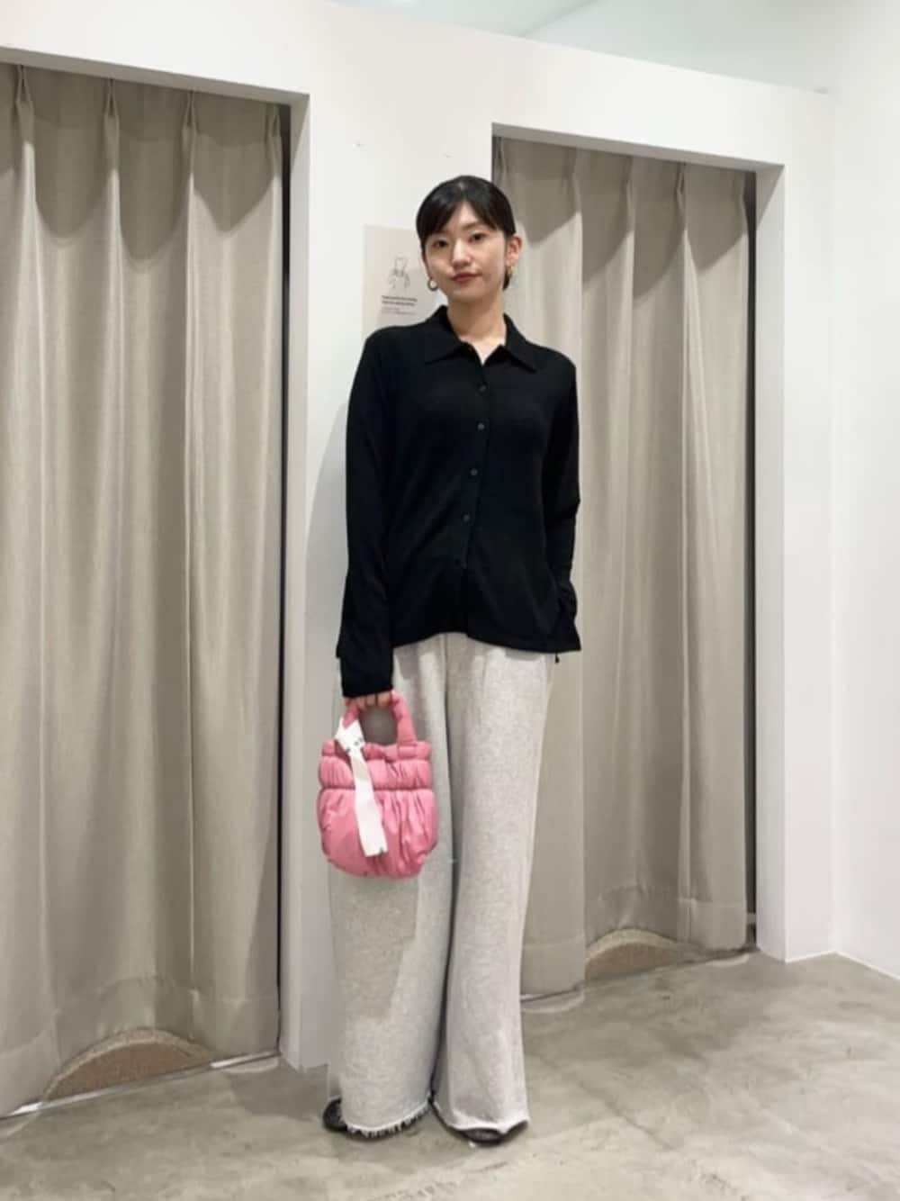 【サイズ感】 トップス:標準的 パンツ:長め 【コーディネートポイント】 綺麗めのカーディガンにスウェットパンツ合わせで大人カジュアルにしました。