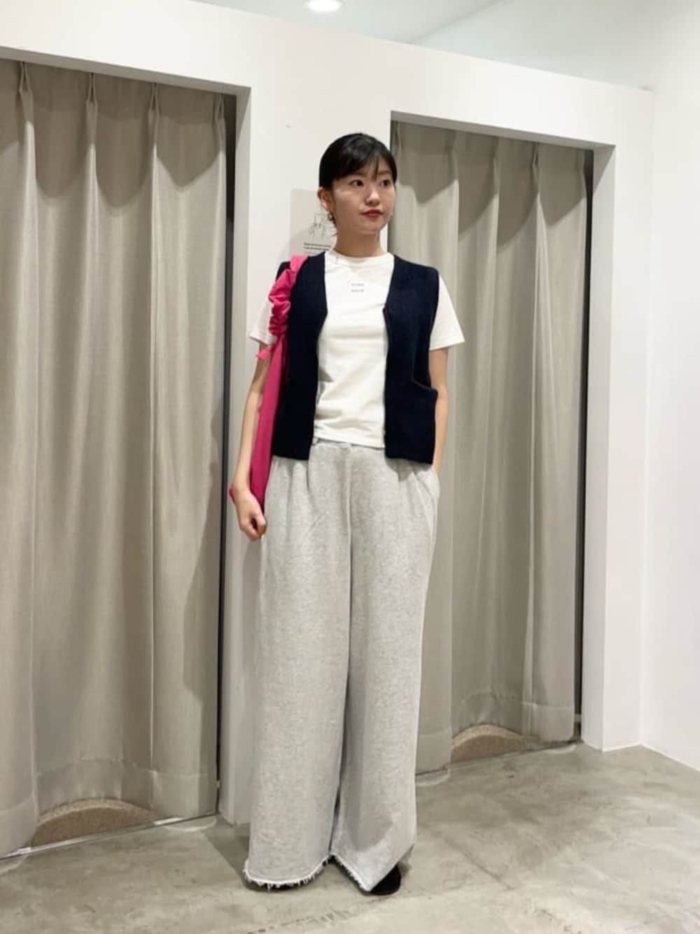 【サイズ感】 トップス:標準的 ベスト:標準的 パンツ:長め 【コーディネートポイント】 まだ暑いけど秋を取り入れたい時にニットベスト×Tシャツの合わせをしたいです。 バッグで差し色を。