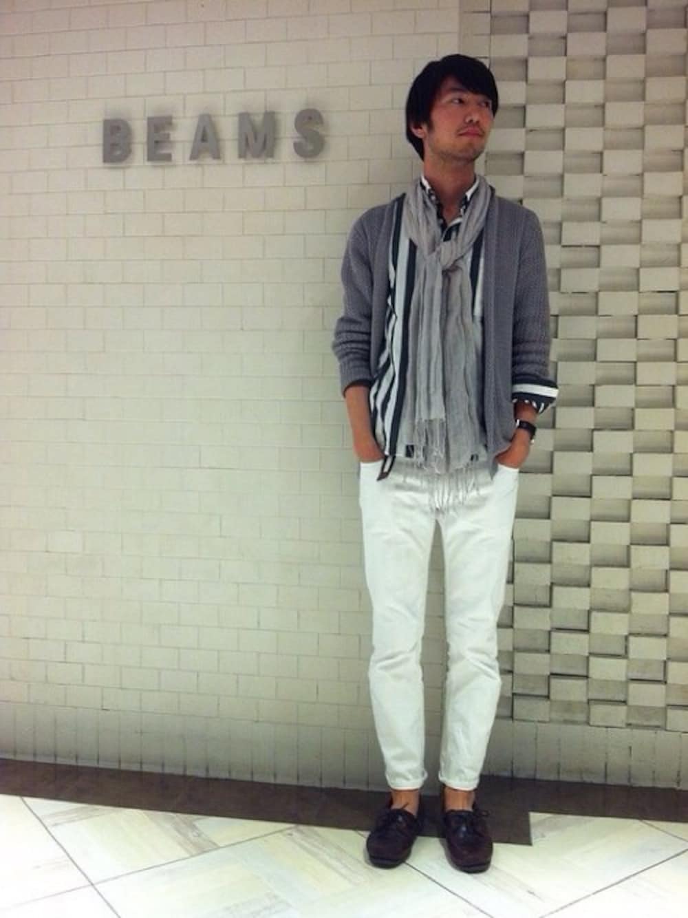 今シーズンのテーマカラーのホワイトをメインにグレーと合わせて大人のリラックススタイル。コットンニットのカーディガンはnuur。