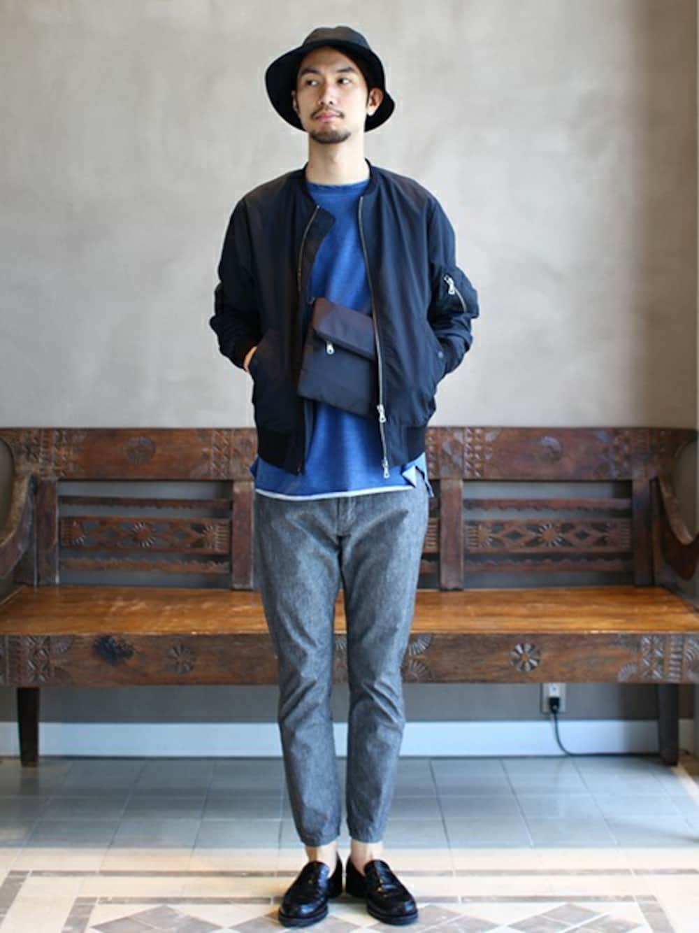 暖かくなってきましたのでお散歩スタイリングです。サコッシュを撥水のブルゾンの中に忍ばせ、メトロハットを被って地下鉄に乗ってお出掛け。でも誰かに会うかもしれないので、ローファーでちょっと格好つけました。的なスタイリングです。