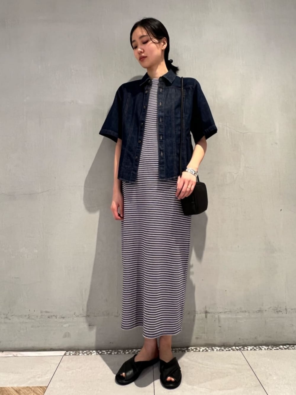 【サイズ感】 シャツ:ゆったり ワンピース:標準的 サンダル:ジャスト 【ポイント】 ワンピースはノースリーブなので、夏は一枚で着用したり、今の時期は羽織と組み合わせたりと長いシーズン着回せます。