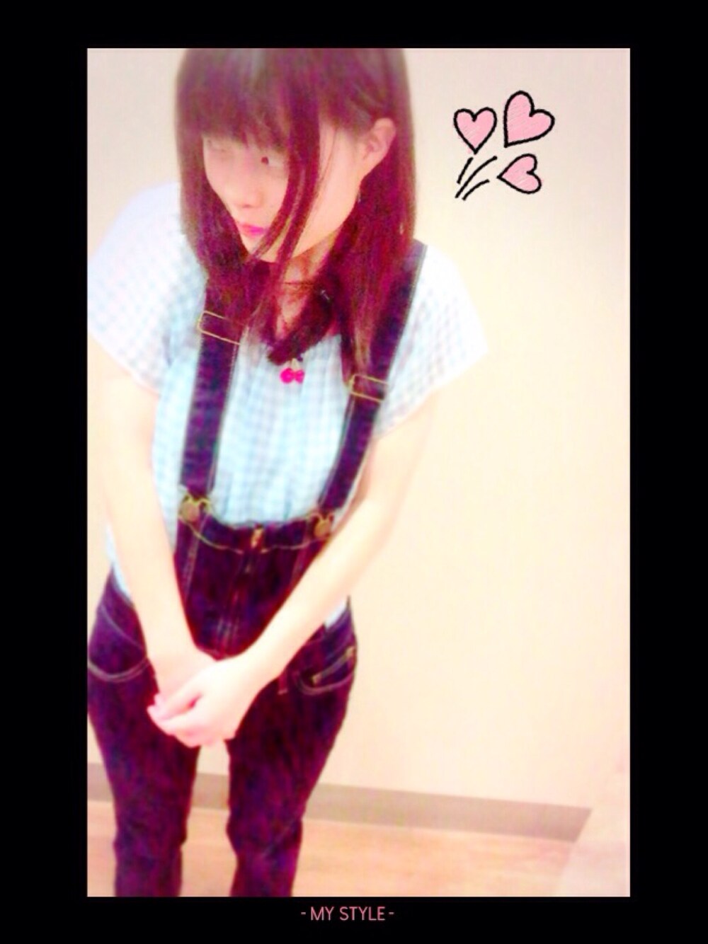 ギンガムチェックのオフショルに オールインワンを合わせました🙌 チェリーのネックレスで夏感UP🍒
