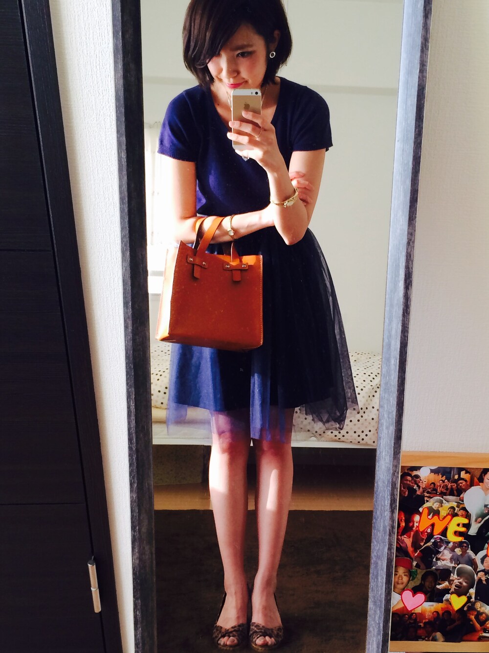 紺コーデ♡ たまには女の子(^_^) イタリアで買ったかばんが お気に入り〜♡♡