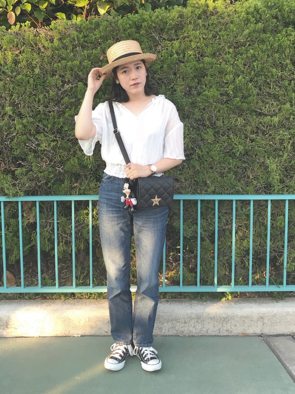 ディズニー行った時のコーデ♡ カンカン帽は去年買ったカオリノモリのを大切に使ってるよ!