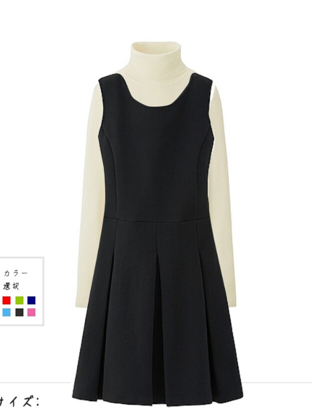 白のタートルネックと黒いワンピースに明るい暗めをバランスにしてみました 上着は何かを着れたらいいかな??