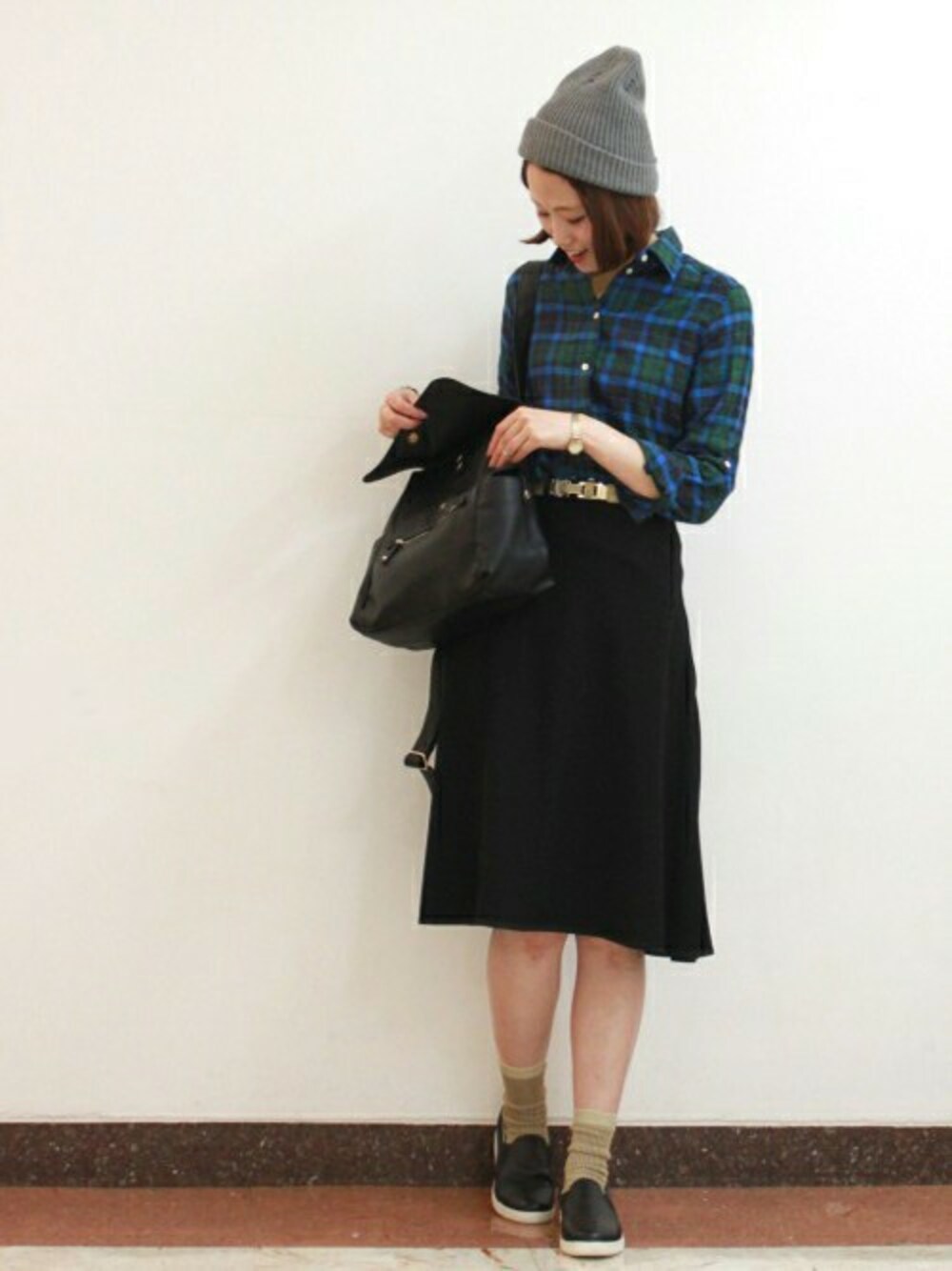 チェックシャツにミモレ丈スカートのリアルコーデ☆