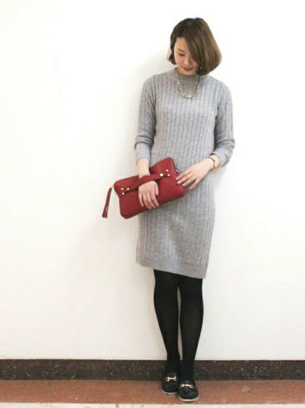 かなのワンピース「肩釦ケーブルワンピース」を使ったコーディネート