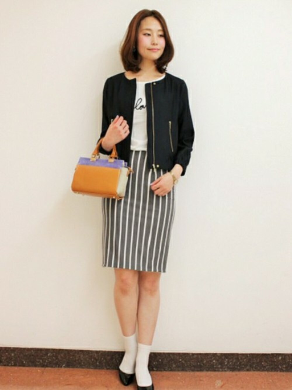 ブルゾンにカットタイトを合わせてきれい目カジュアルにまとめました。