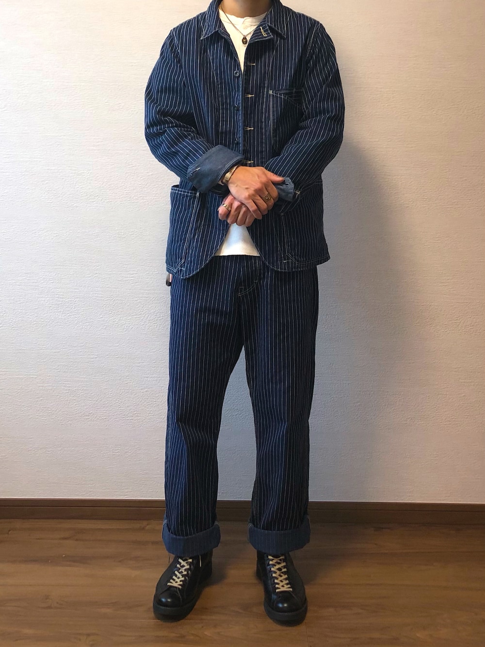 Chigahara Kouのブルゾン「Schott/ショット/OLD HICKORY WORK JACKET/オールド ヒッコリー ワーク ジャケット」を使ったコーディネート