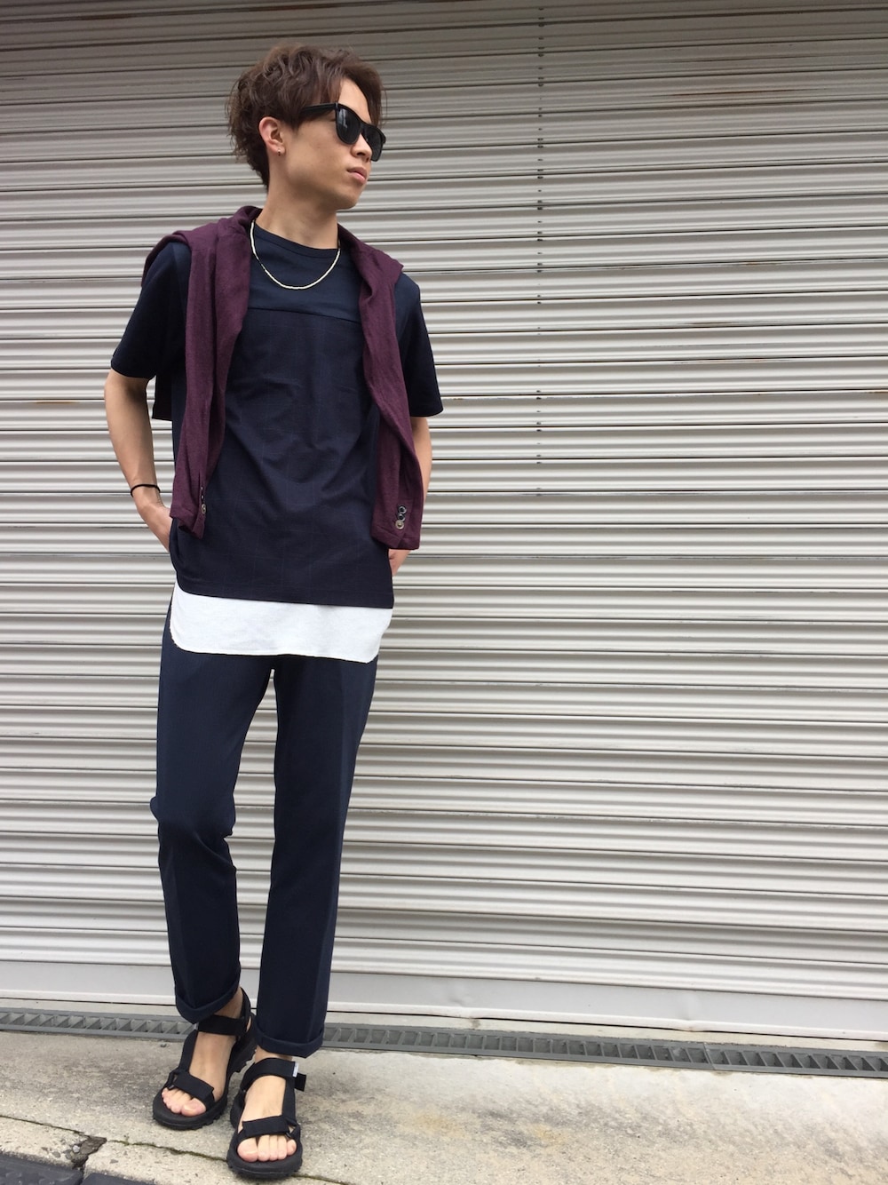 サマーモードw 寒色が多かったですが、今日は黒主体の夏のモードStyleにしました。 色が重たいのであえてサンダルなどで露出高めにリネンのボルドーJKを差し色で! Tシャツ、ウィンドーペーン パンツ、ストライプ 仕事いってきます!