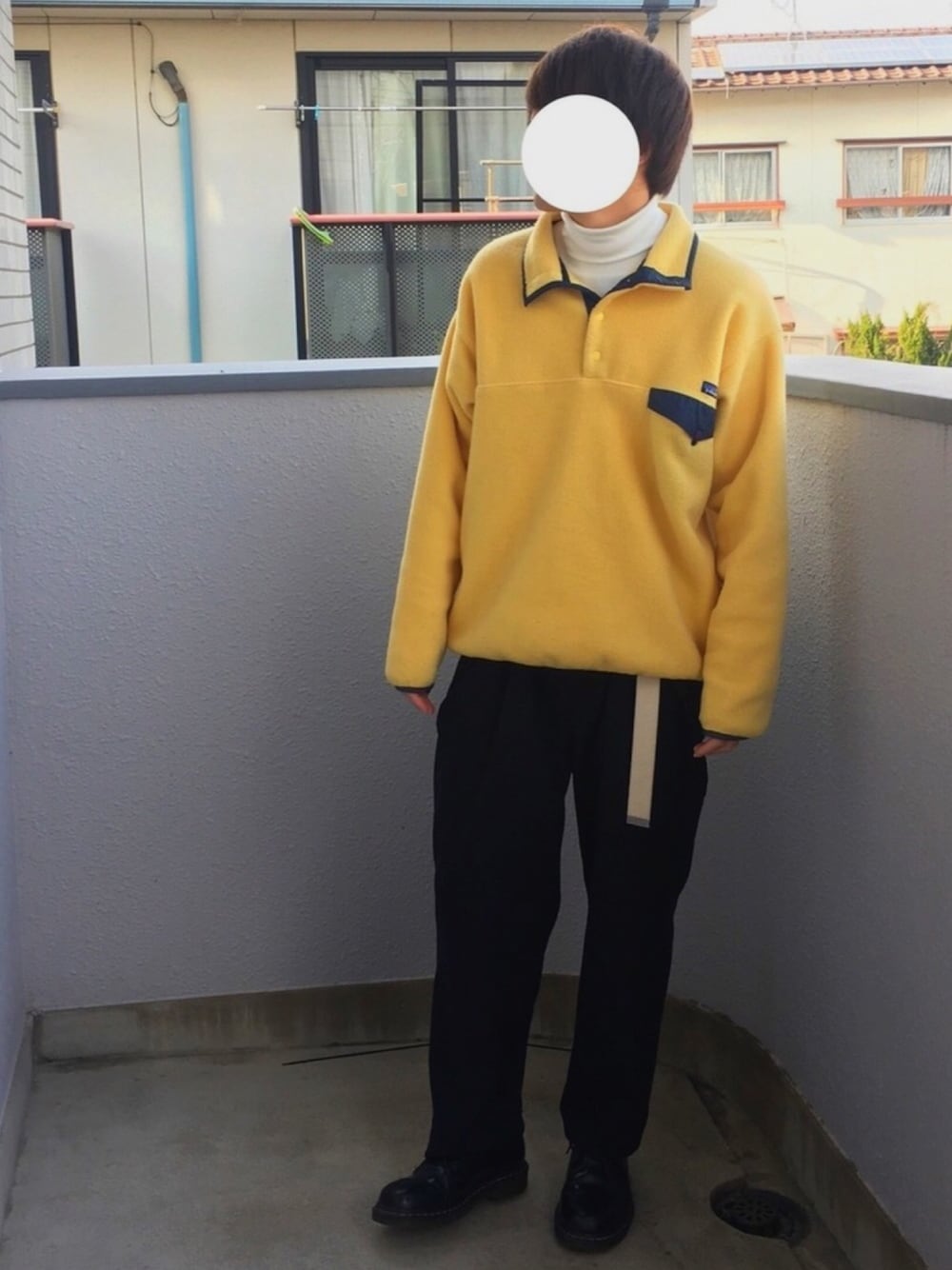久しぶりの投稿です。 今回のコーデは自分自身珍しいゆったりめのコーデになってます! パタゴニアのシンチラフリース購入致しました〜😘 とても暖かいの一言に尽きる😭 しかもシルエットがとても良いかな! ワイドパンツはリドムですね! また、腰部分にアクセントが欲しかったのでガチャベルトも使用しました〜😐 サイズ シューズ 7 ボトムス S トップス S アウター L 参考になりましたらいいね、フォロー、saveよろしくお願い致します😝😝