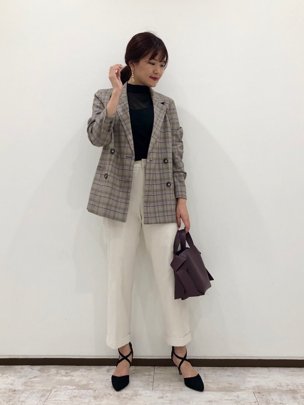 秋マストアイテムなチェックジャケット✴︎ パープルのラインが入っててすごく 可愛いです♡ 通勤スタイルにもカジュアルにも 万能な1枚です♪