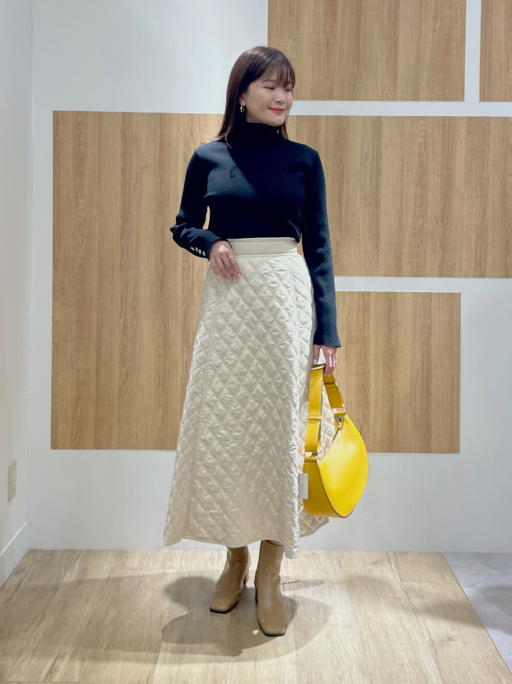 軽くて着心地◎なキルティングスカート 。 フレア感ありでカジュアルをかなえられる1枚。 綺麗目ニットの合わせとで 大人カジュアルコーデにでも✴︎