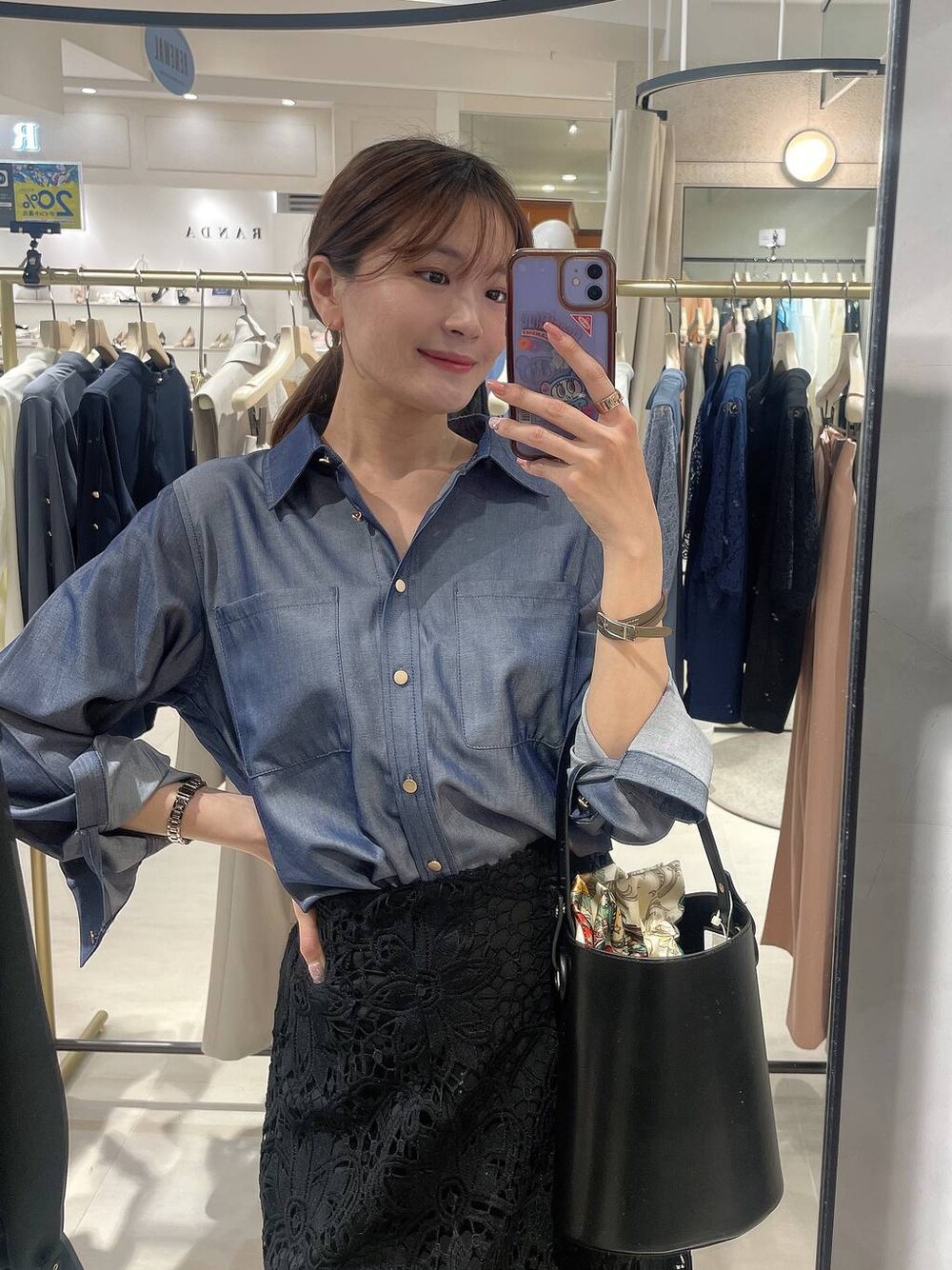 光沢感ありなカジュアルデニムシャツ。 高見えする1枚。 夏にかけての羽織に使っても◎ どのボトムとも合わせやすいアイテム
