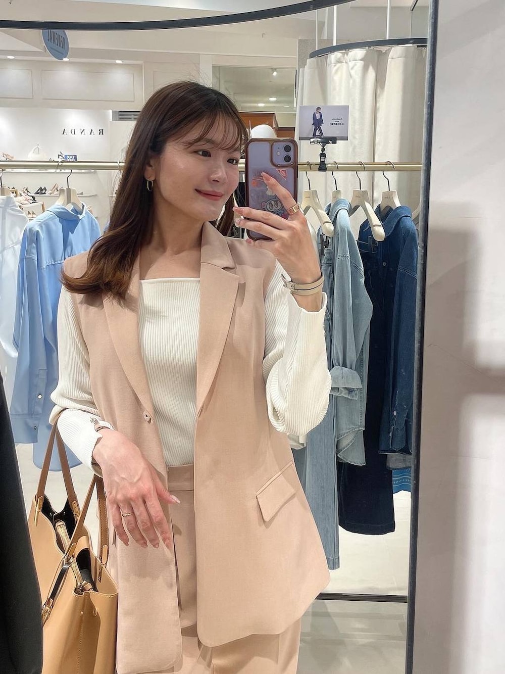 春夏活躍なセットアップ。 寒暖差ある中で、長袖から半袖で、ノースリーブなどにも 合わせられるジレと、パンツスタイル。 綺麗目からカジュアルに◎