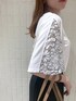 上品さのあるレースTシャツ。 白は透け感はあるのでベージュなどの インナー合わせがおすすめ。 腕周りもカバーしてくれるフレア袖。 サラッとした着心地で着やすいです。 カジュアル合わせからオフィスコーデにでも。