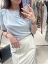 ユルッと綺麗目。 カジュアルにも大活躍 ◎ 袖はスッキリに、デコルテ開き綺麗に見えるTシャツ。 新色のブルーはブルベ夏活躍1枚 休日レディなスタイルにでも♩
