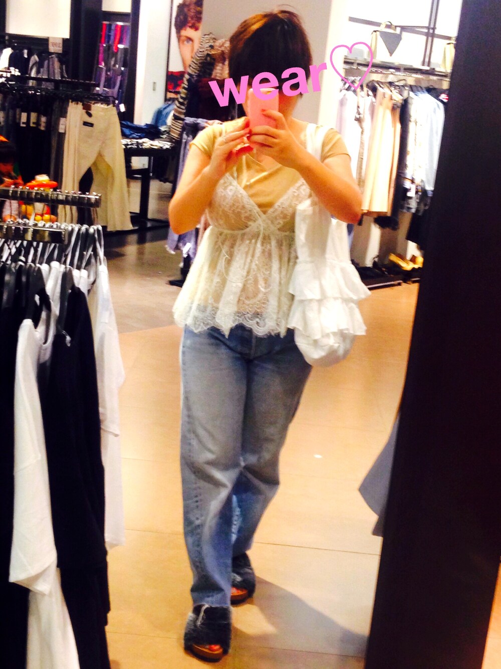 本日のコーデ☀️ saleで買ったレースキャミが本日の主役👚 フリルバッグと合わせてガーリーコーデを意識してみました😊 また秋を意識してnewファーサンダルを履いてみましたが、まだまだ暑いですね😅😅😅 またUPします👋🏻👋🏻👋🏻