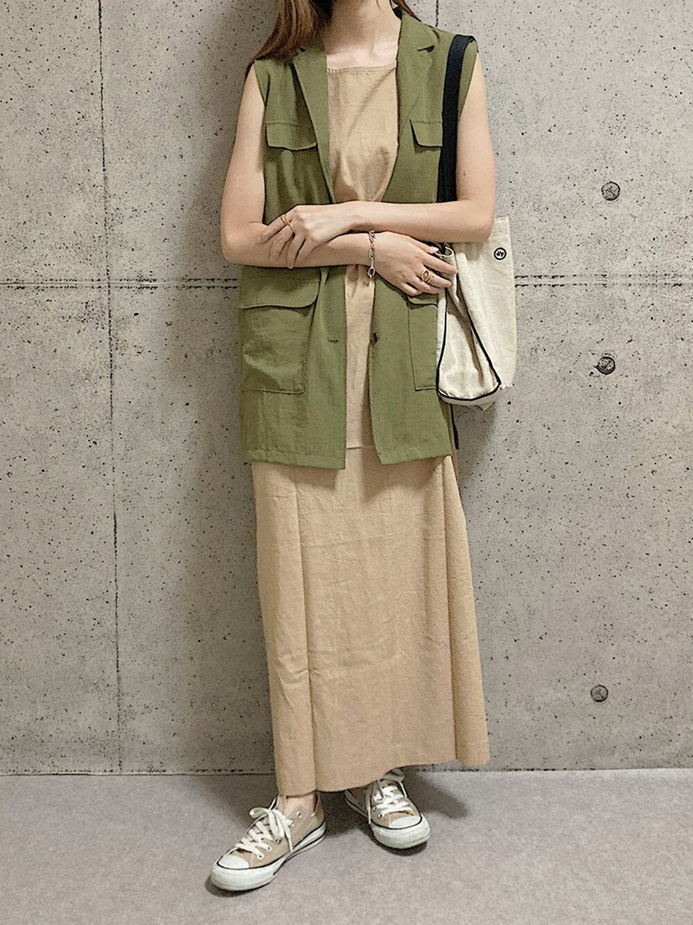 tanのスニーカー「converse コンバース CANVAS ALL STAR COLORS OX キャンバス オールスター カラーズ オックス 32860669 BEIGE」を使ったコーディネート