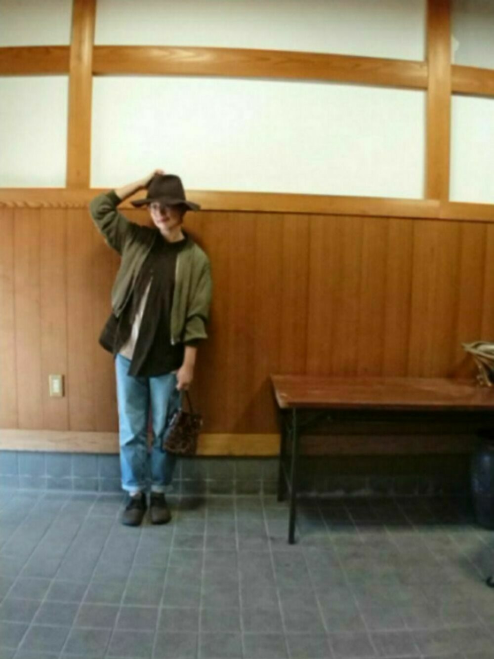 まゆのハット「ワックスコード巻フェルト中折つば広ハット」を使ったコーディネート