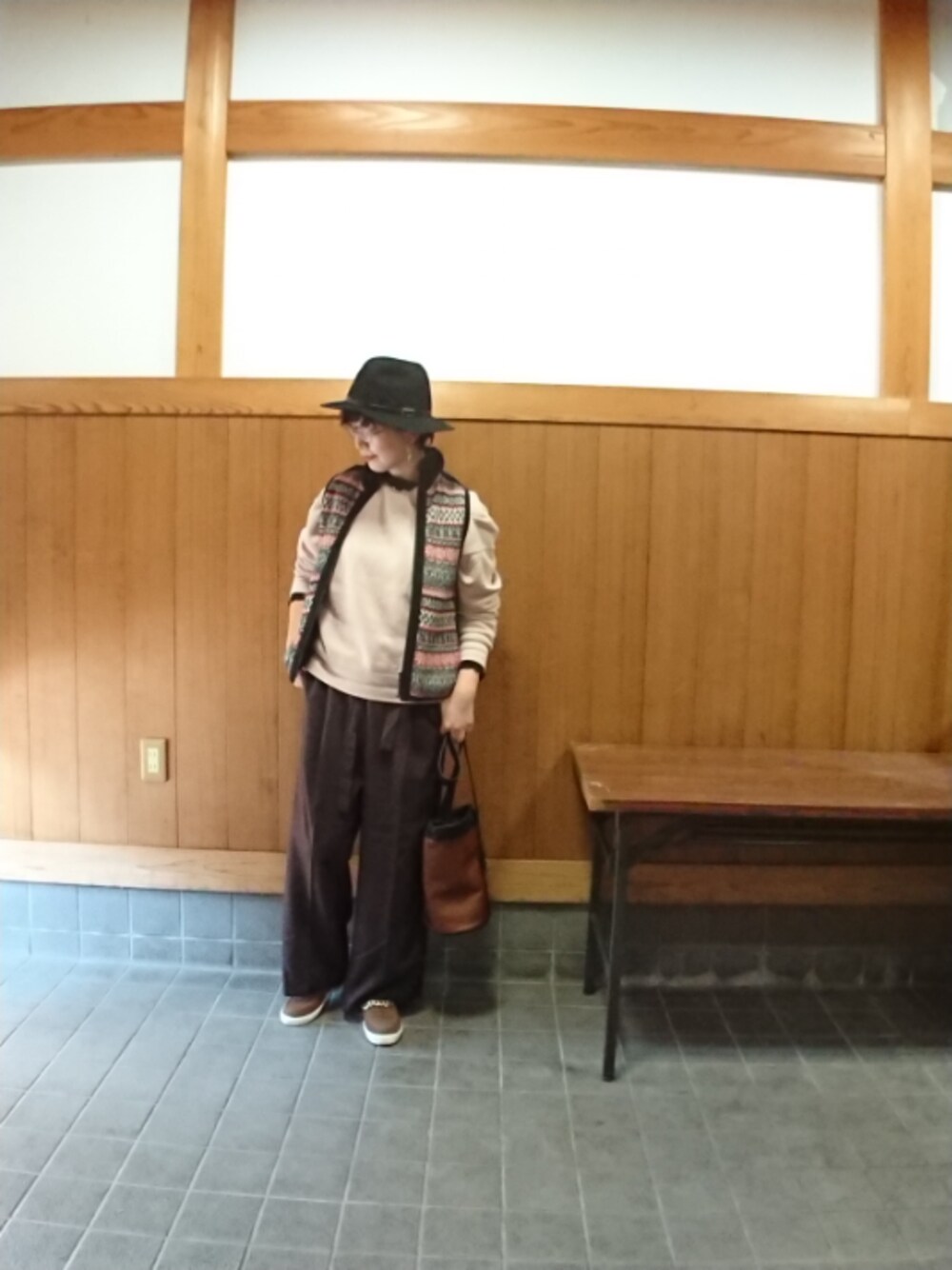 いつも いいね お気に入り フォロー ありがとうございます✴️ 📁in 💬 すごくうれしいです❣️ 北欧柄のかわいらしいベスト を 着たくて あえて ニット帽ではなく ハットをあわせてみました