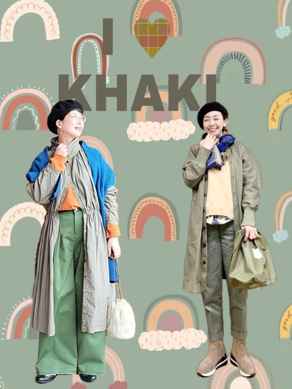 閲覧頂きありがとうございます 今日はゆきちゃんとカーキコラボ! 新春セールで狙っていた、このシャツワンピース✨ 3色あるうちの、ベージュかカーキを迷ってゆきちゃんに相談してみたところから始まったカーキコラボ💚 ポチ☝️っとしてから届くのを楽しみに待っていたワンピース 嬉しくて、ワンピが届く前から手持ちのカーキ色でコーデを組んでみたりしてテンション上がってしまいました‼️ いざ届くと、これまたなんとも着こなしの幅が広がりそうなワンピースでした✨ 前後で着られる2way、ネック部分を立てても寝かせてもキレイだし、ウエストの絞り具合でも印象が変わる もちろんボタンの開閉で羽織ったり、一枚で着たりと盛りだくさん🤭💗 #ウチらカーキ族 #カーキ大好き💚 1回めはカラーニットを使ってコーデを組んでみました 絶対合わせてみたかった、思いきりワイドなオリーブグリーンのパンツにはオレンジのニットをチョイス🍊 同系色のストールにしてみたけど、やっぱりカラー好きの血が…🩸 こっくりした配色をスカイブルーの補色の力でインパクトある大人コーデに🟦 ゆきちゃんに見せたら 『寄せるからまっててー✴️』とその日のうちに寄せてコーディネート‼️早い❗ 私とは対照的な細身シルエットでワークな雰囲気に、カラーを寄せてくれました✨ ゆきちゃんとはコラボ、2回めだけど毎回光るのはカラーの使い方とバランスが絶妙❗ 纏まりがいつも美しい…💘 そんなゆきちゃんをイメージして、今回のコラボの背景は虹🌈を 虹を見ると笑顔になるように、ゆきちゃんを見るといつも可愛らしい笑顔に嬉しくなります🤭 ゆきちゃんの所では、色違いの虹🌈💗 小窓にはゆきちゃんが作ってくれたコラ画を載せています❗ 初めてなので嬉しかったなあ! このワンピ、かなり着まわし抜群でコラボ1回では終わりませ~ん コーデはもう考えてあるのですが、雪が降ったり忙しかったりとなかなか撮影おいつかず…💧 後日改めて第二弾カーキ族💚やりたいと思っています!✴️