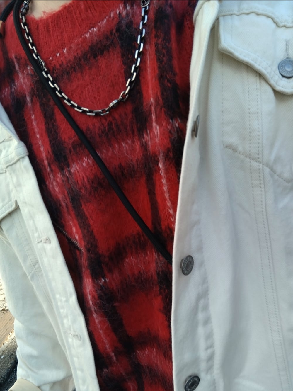 新しいニット買ったので、リーバイスのデニムジャケットと合わせてみました。 ジャケットは前にアウトレットで買ったデッドストックのだった気がする。 12月っぽいカラー。 パンツはカーゴ的なワイドなものでも、トラウザーズ的なタイトめでもいけるんじゃないかなと思ってます。 この時はニット合わせでNO ID.のZIPトラウザーズ。