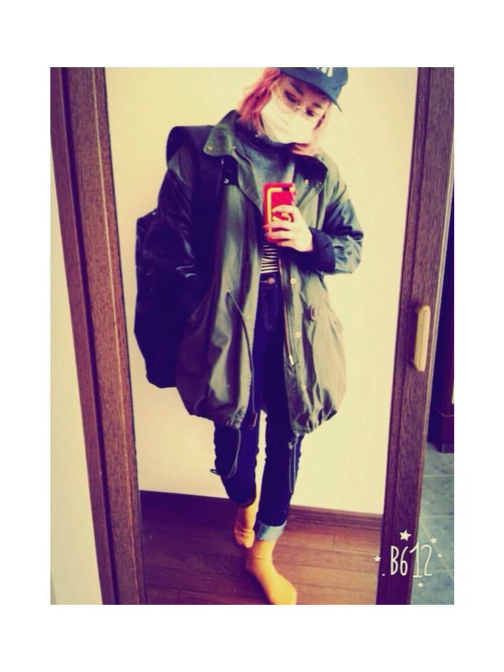バイトいってきます! 今日も変わらずの寒さ。 中は変形ニットにボーダーのタンクトップ。 インナー見えるからいろんな コーデに合わせられる!