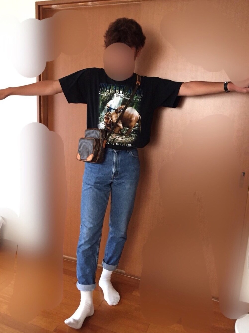 Tシャツは下北沢で購入しました。 ちなみに1200円です。 下北沢で購入したリーバイスのパンツが お気に入り👐👐 靴はエアマックス98を履いてます。 最近暑すぎてきちいです。