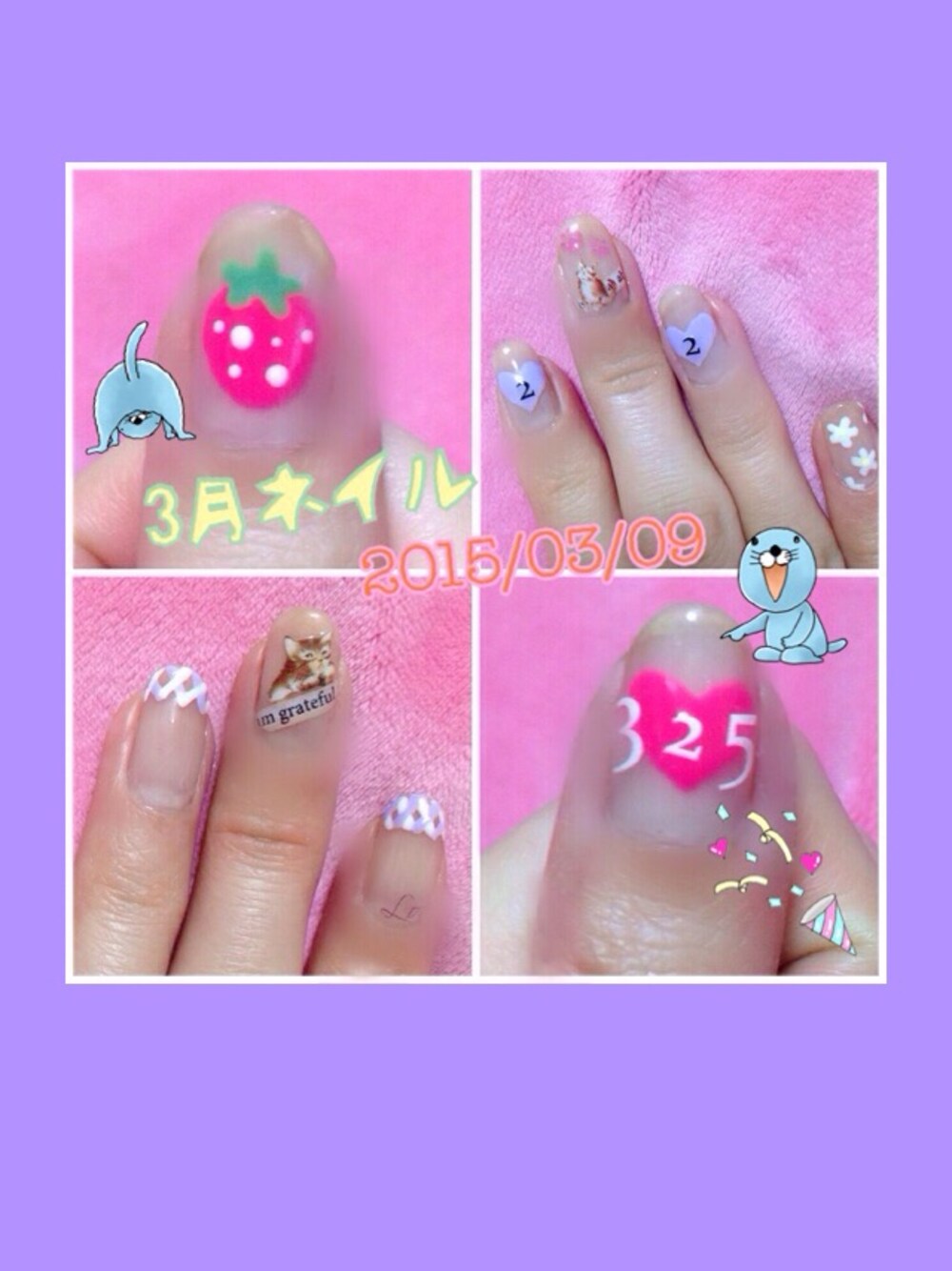 久々にネイルも載せます✪ いちご可愛く描けた🍓(自己満)