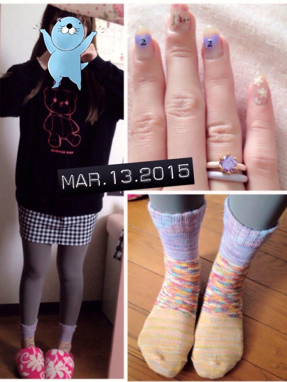 靴下 shanti2 アップ出来てるかと思いきや 出来てなかったーーー(>_<) 13日のコーデです! パーカー×タイトスカートの 組み合わせにはまってます♡ 全体暗いので足元は春らしく🌸