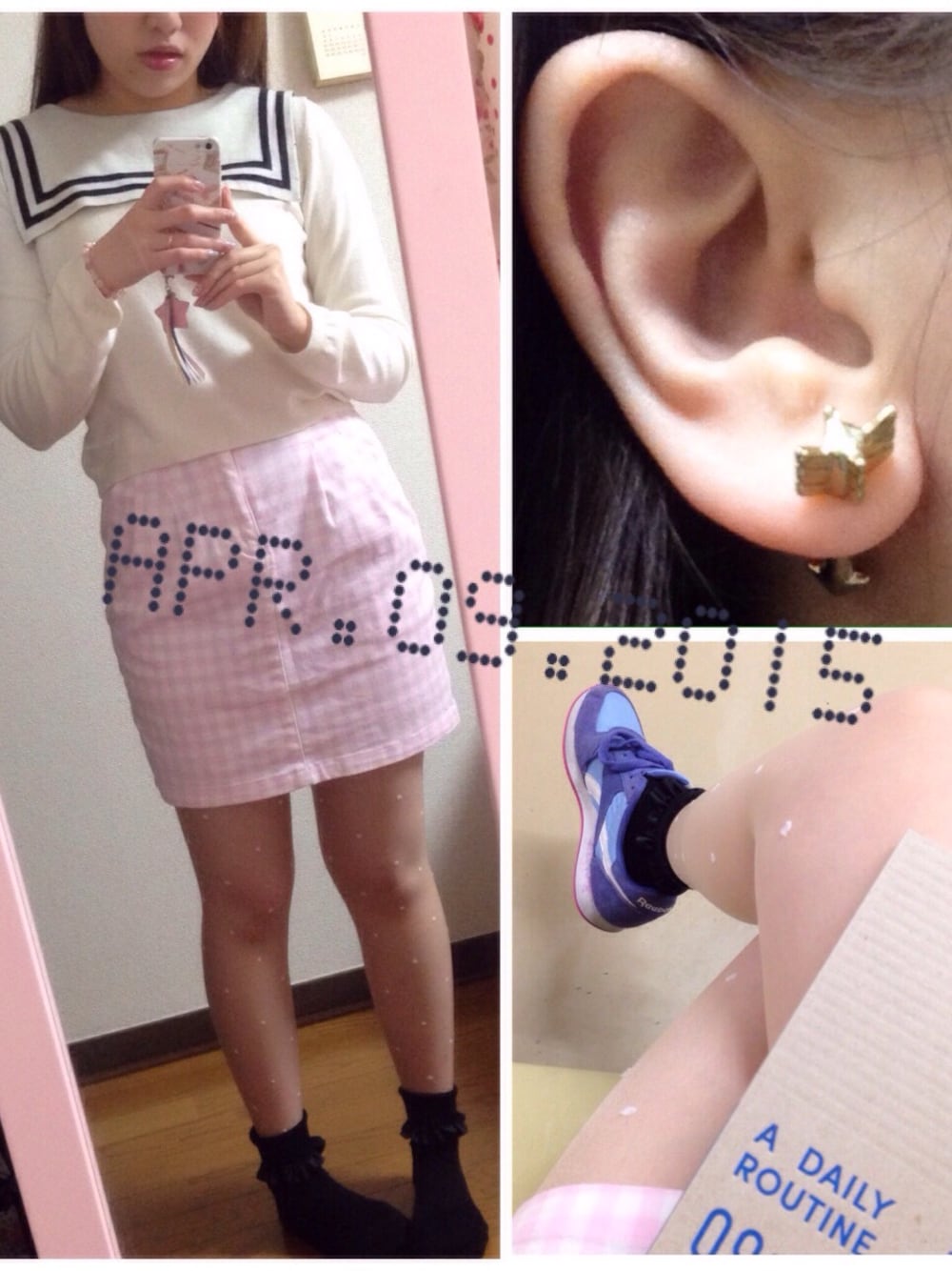 セーラーニット着やすいので お気に入りです(^ν^) 去年購入しました🌟 ピアスわかりにくいのですが 矢の形〜〜(⊃´-`⊂)