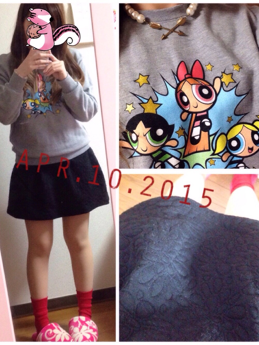 パワパフ💗 昨日寒かったのでまたきちゃいました! 昨日は黒のスカートと合わせて 着たので靴下に色を入れて赤で(^ν^) くしゅくしゅってさせて履きましたが 2つ折りにしてもいい感じでした🌟