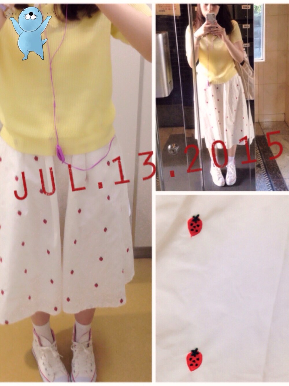 スカート🍓柄という(*ˊᵕˋ*)💟 トップスは夏らしい黄色で〜〜 あんまり黄色着ないんですけど 夏になると着たくなる🌟