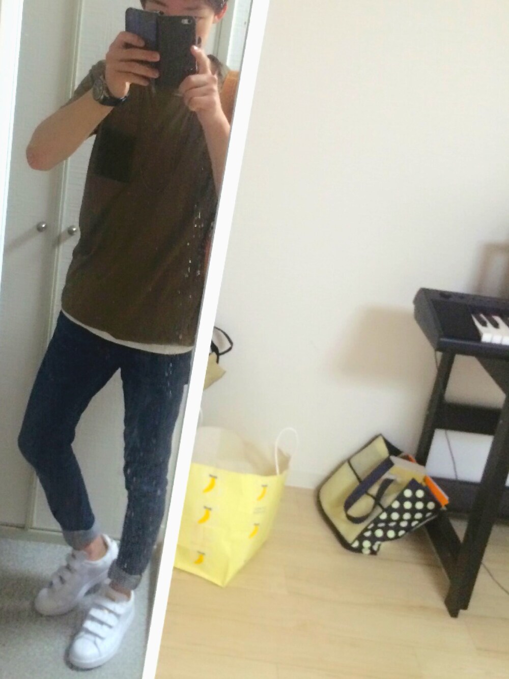 ゆゆーのTシャツ/カットソー「STUDIOUS シルキータッチレザーポケットT」を使ったコーディネート