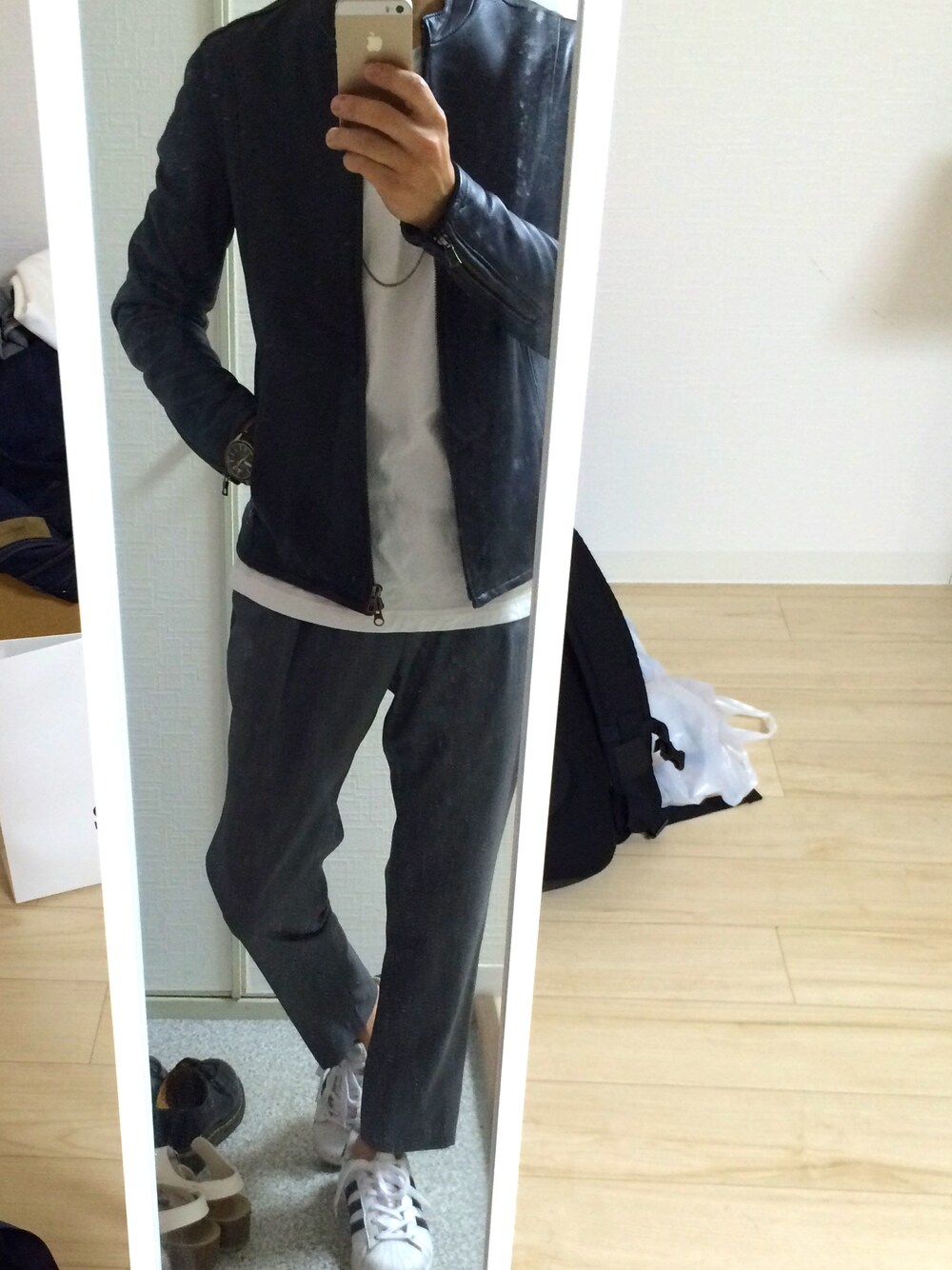 ゆゆーのライダースジャケット「STUDIOUS ソフトラムシングルライダース-made in japan-」を使ったコーディネート