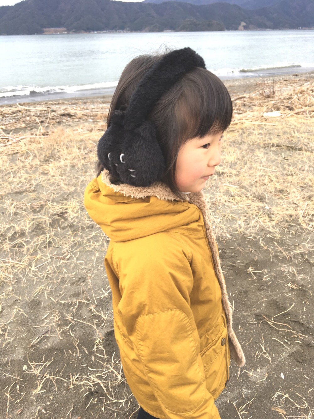 ブラック系のイヤーマフを着用したキッズの冬コーディネートの1枚目の写真