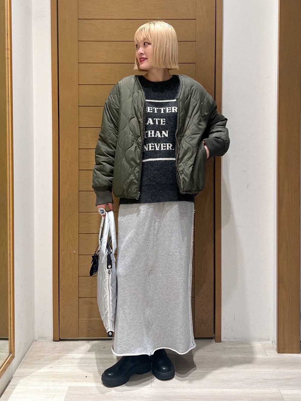 ⭐︎ボアリバーシブルブルゾン 【デザイン】 リバーシブルで着れるアウター! ボアがもこもこしていて可愛い! 【サイズ】 163cm→Mサイズ ちょうど良い ⭐︎ジャガードロゴニットプルオーバー 【デザイン】 ロゴが可愛いニット! トレーナー感覚で着れるので合わせやすい✨ 【サイズ】 163cm→フリーサイズ 少し大きめ!ルーズで着やすいサイズ感◎ ⭐︎フロントジップスウェットスカート 【デザイン】 スウェットスカートはトレンド! カジュアルなコーデにおすすめ。 タイトだけどシルエット拾わない◎ 【サイズ】 163cm→Sサイズ ちょうど良い! 自己紹介🎀 BAYFLOW 札幌発寒店📍 98' | 163cm 骨格ストレートの方のための着痩せスタイリングを提案しています✨ 特に肩周りのボリュームや、肩幅をカバーする着痩せコーデが得意です! Instagramでもコーデ紹介してます🌼 よかったらフォローしてくださると嬉しいです🤍