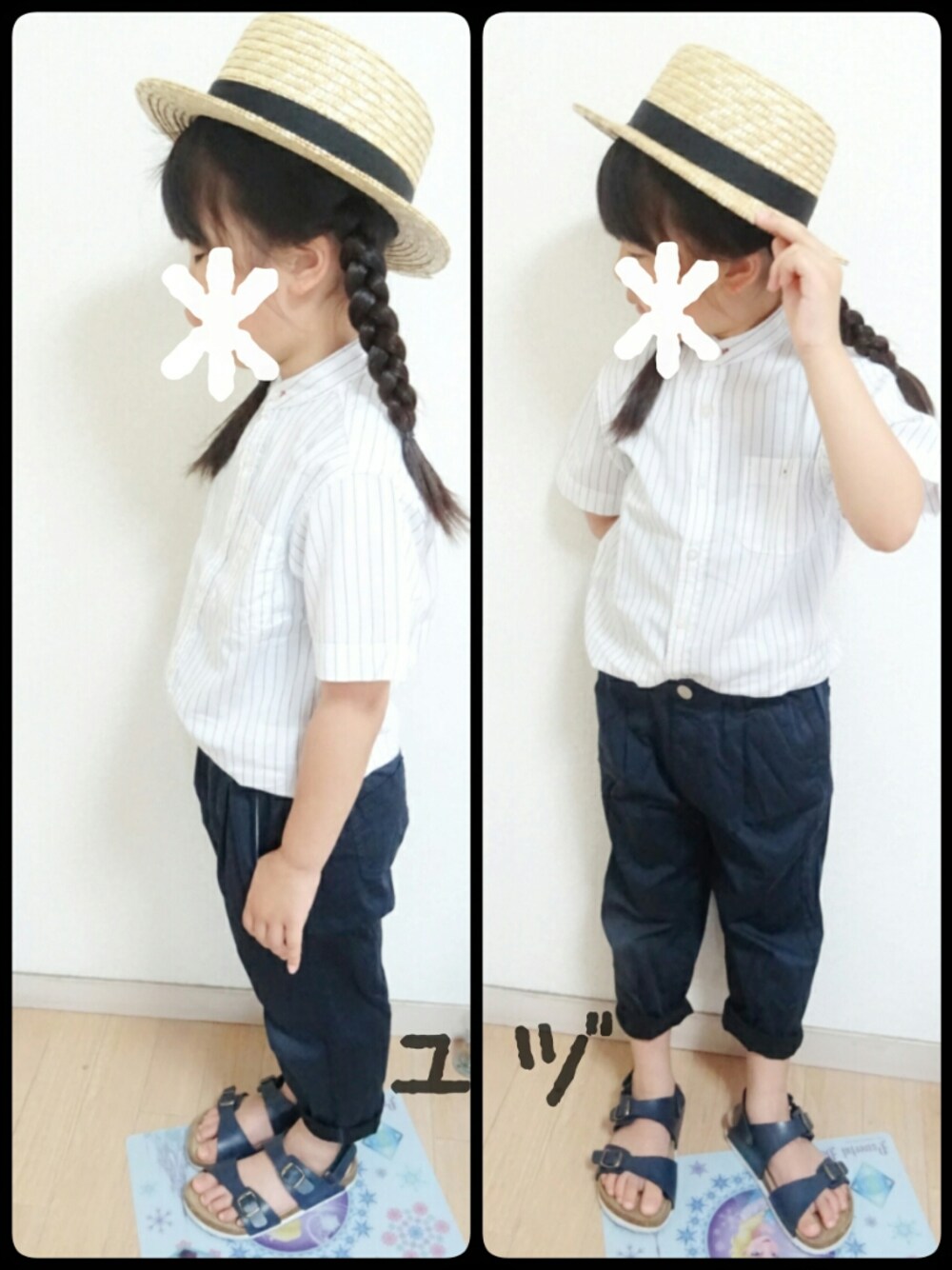 今日も暑くなりそう…… このストライプのシャツは色も落ち着いてて柔らかく使いやすい! 襟がない?ので子供も着やすいみたい^^ 学校のお友だちもお揃いで買ってくれました** 今から服作り~♡