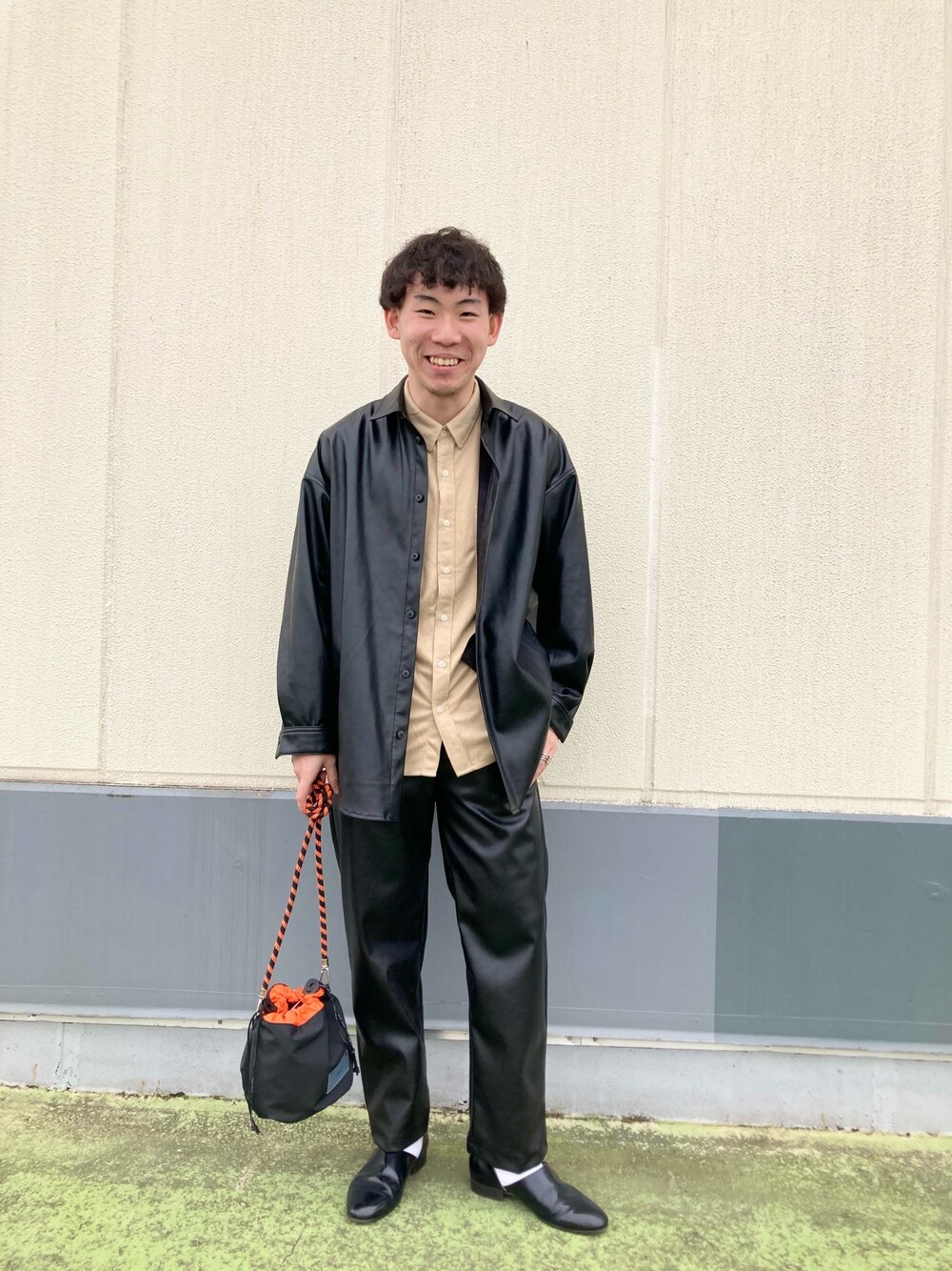 今回は、今季の春夏においてかかせないアイテム、ヴィーガンレザーのシャツとパンツを用いてセットアップコーデ!! セットアップできるときつそうなイメージもありますがインナーで柔らかい色やアイテムで合わせるだけで中和されトレンドを入れつつ新しいスタイルが出来上がります! 気になる方は是非!チェックしてみてください!!