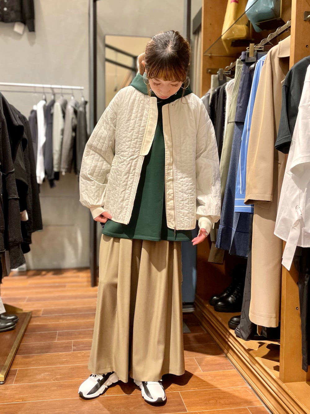 HONTOMO(B'2nd roit 札幌)のパーカー「EZUMi(エズミ)レースコンビサイドプリーツパーカー / YEAW21CS01」を使ったコーディネート